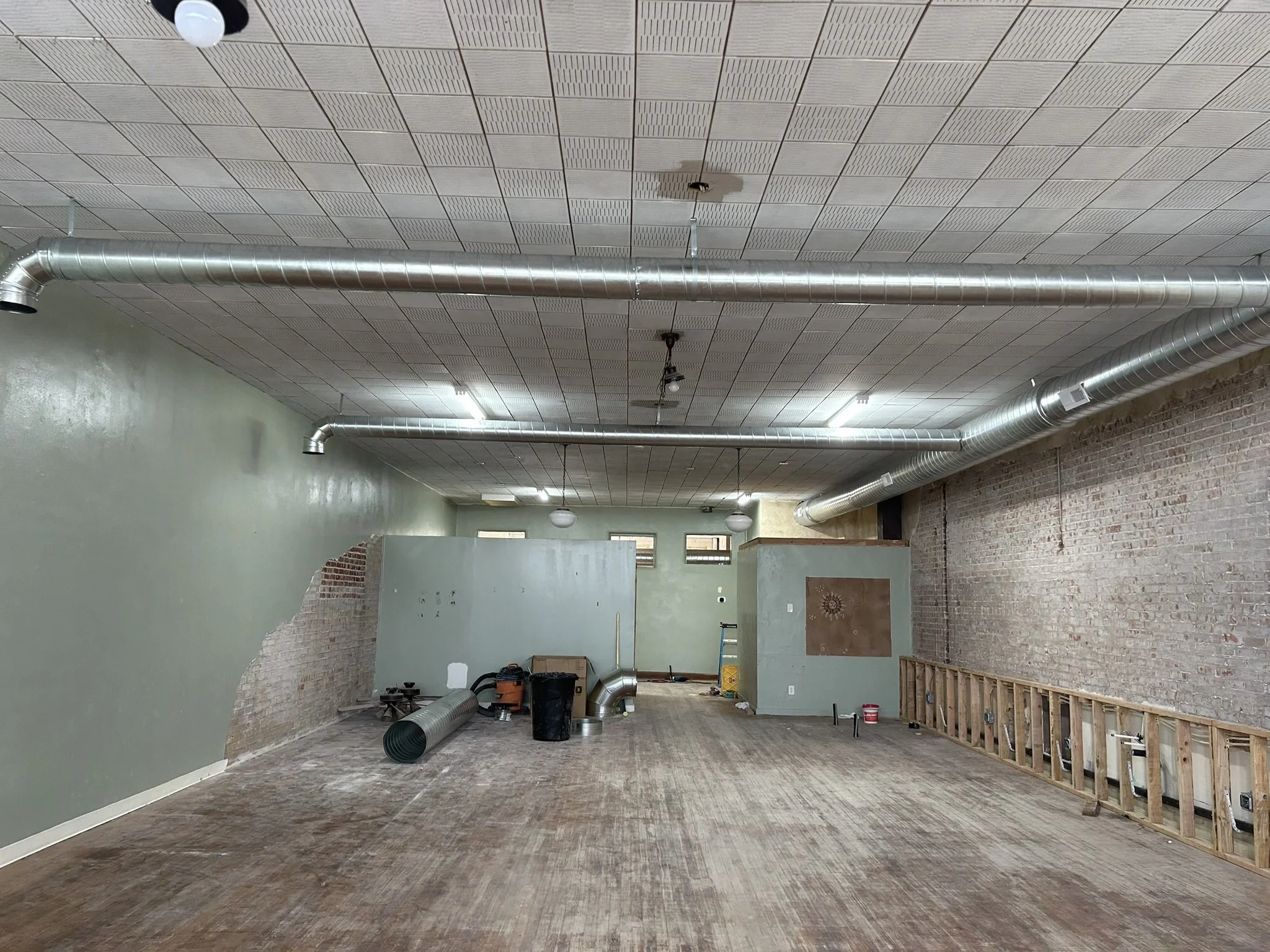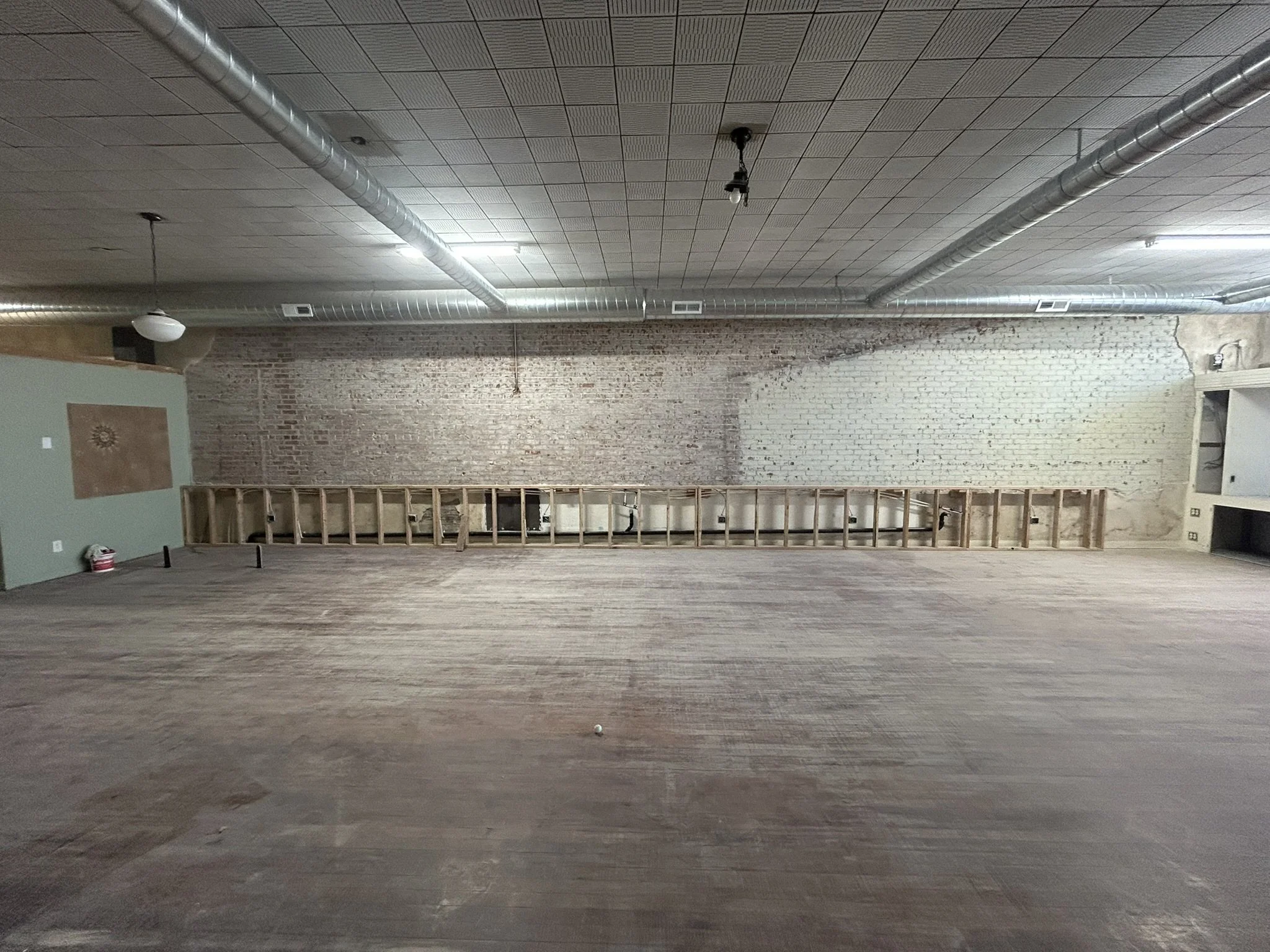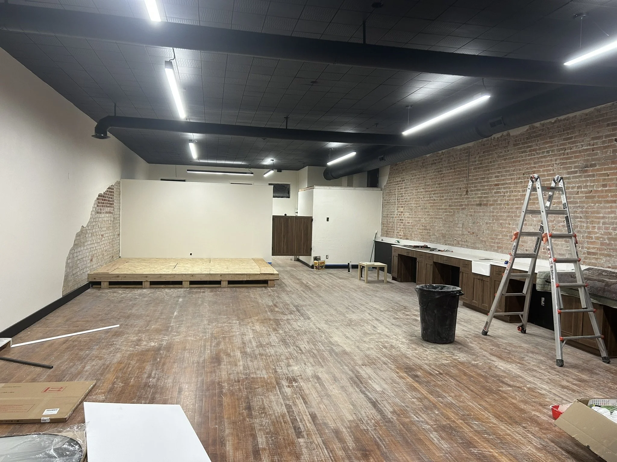 renovations are done! The new space features five barber stations and two shampoo bowls. Original hardwood floors and exposed brick bring classic charm, while fresh paint and modern lighting add a contemporary edge. There is a stage that will soon be complete with lighting, projector and a sound system; perfect for hosting small concerts, comedy shows, open mic nights, student recitals and more!