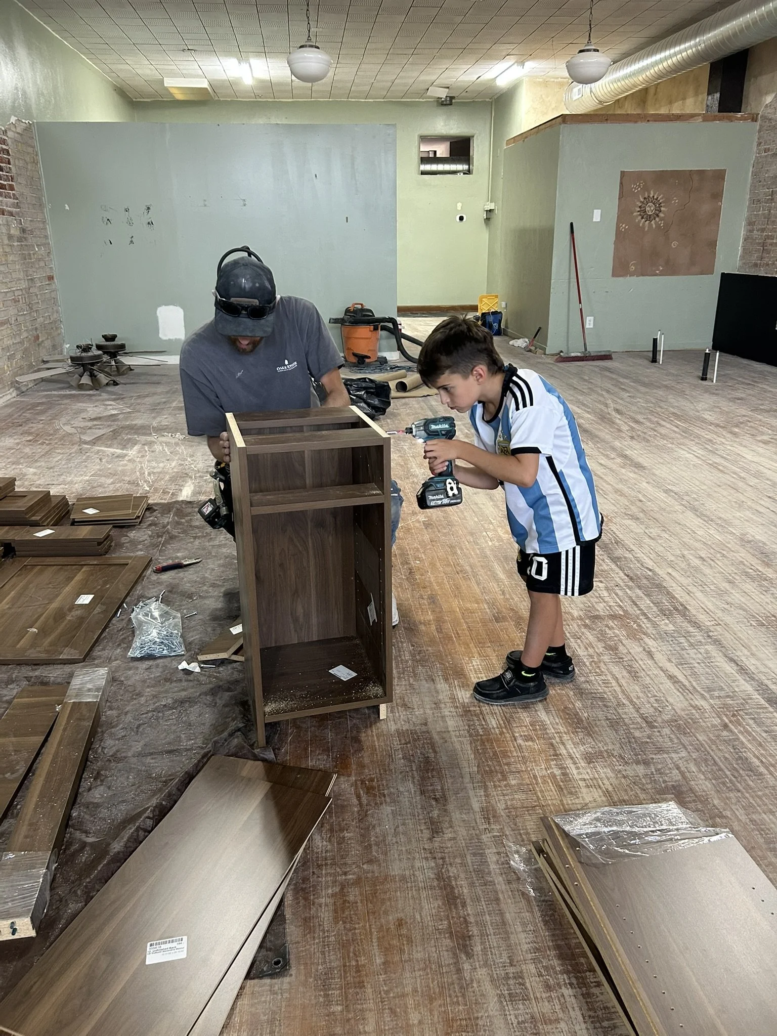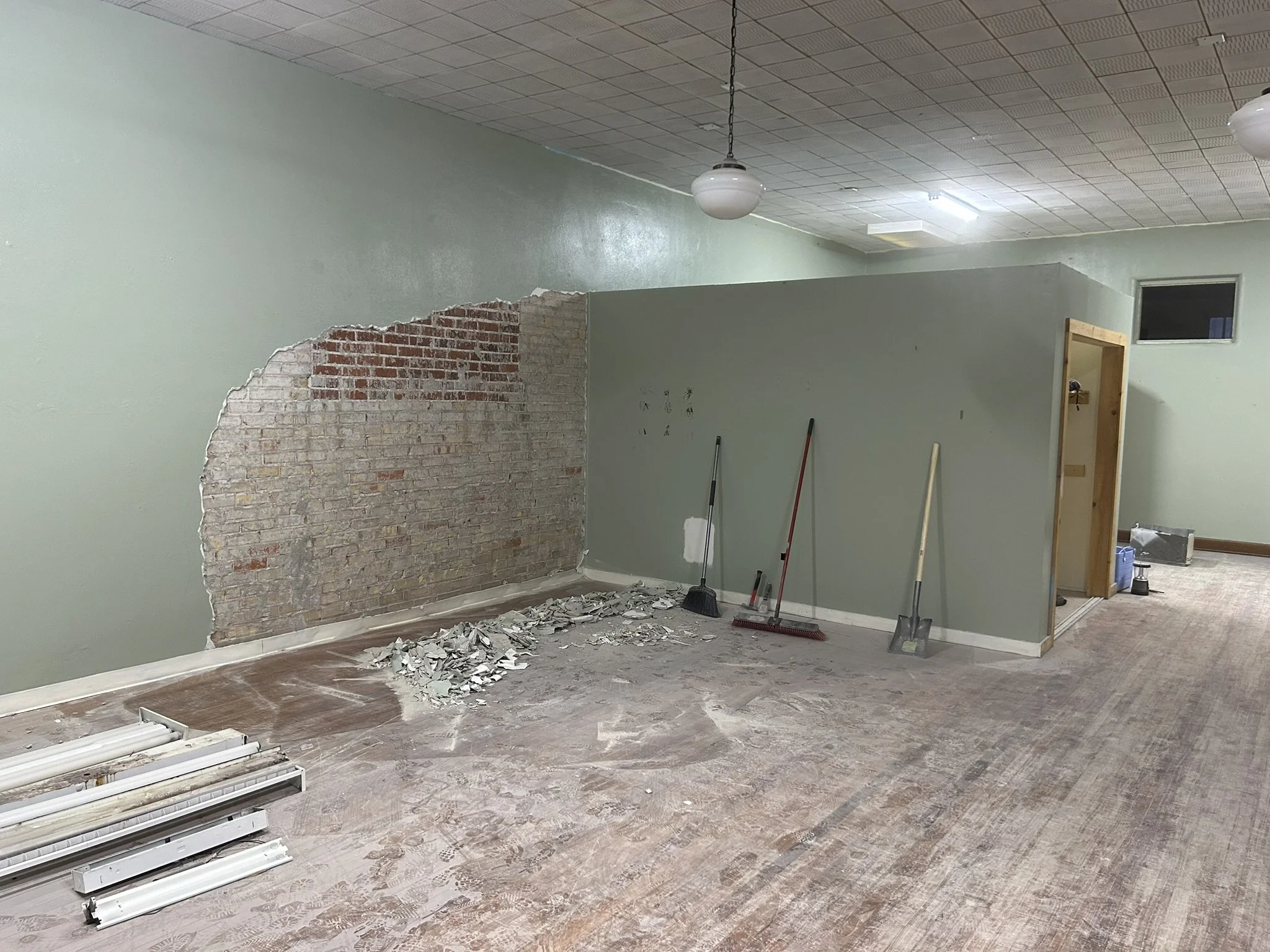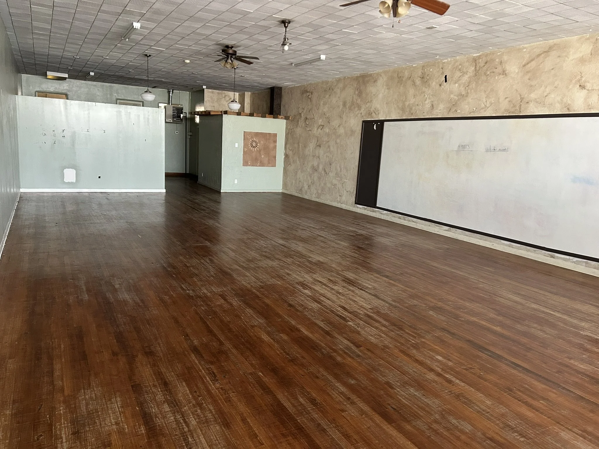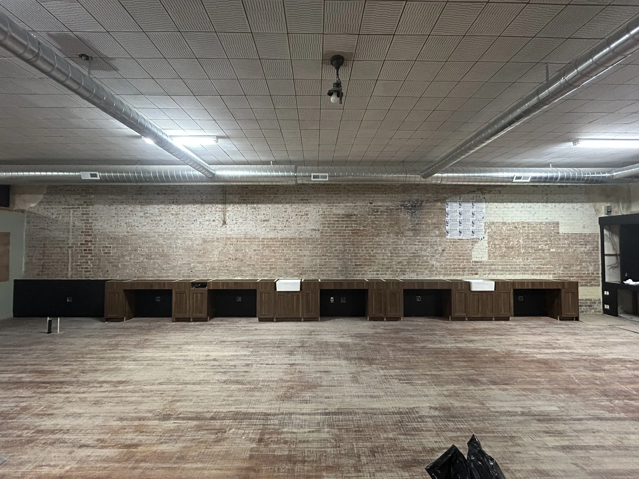 renovations are done! The new space features five barber stations and two shampoo bowls. Original hardwood floors and exposed brick bring classic charm, while fresh paint and modern lighting add a contemporary edge. There is a stage that will soon be complete with lighting, projector and a sound system; perfect for hosting small concerts, comedy shows, open mic nights, student recitals and more!